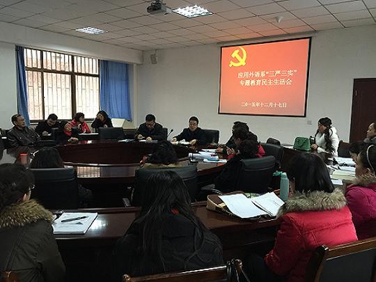 12月17日下午,应用外语系党总支“三严三实”主题民主生活会在东主教圆桌会议室召开,学院纪委书记蒲卫晖及应用外语系19名教工党员参加了会议。