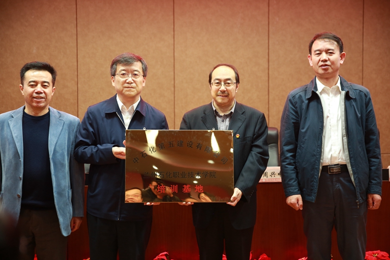 4月20日,中石化第五建设有限公司为我校授予“中石化五建公司兰州培训基地”,五建公司党委书记蒋德军、我校党委书记周兴中,五建公司纪委书记、工会主席王忍利,副总政工师、人力资源部主任石坤、yl88858永利中国院长王鹏参加了授牌仪式。