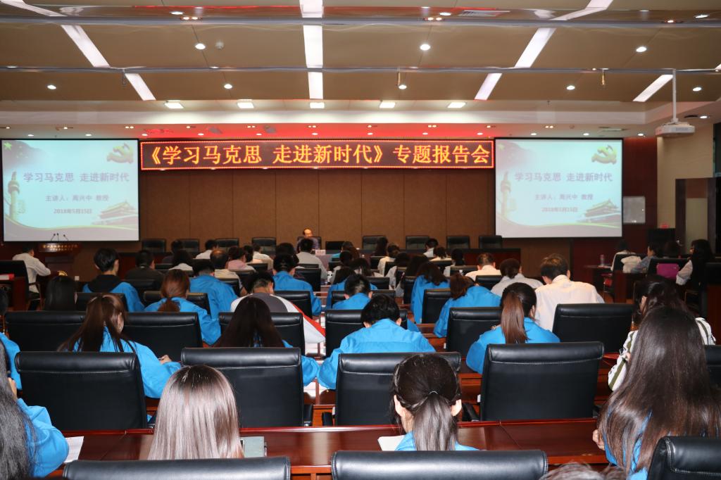 报告会上,周兴中对马克思的生平作了详细介绍,对马克思主义理论体系的基本概念、组成部分、诞生和发展历程及对人类社会的贡献作了详细的阐释,对习近平新时代中国特色社会主义思想“中国梦”“两个一百年”奋斗目标作了生动的解读。周兴中指出,马克思从黑格尔、费尔巴哈等人的理论体系中不断探索,创造出属于自己的“辩证唯物主义”,实现“改变世界”的目的。在人类思想史上,没有一种思想理论像马克思主义那样对人类产生如此广泛而深刻的影响。马克思主义之所以具有旺盛的生命力,之所以仍然是当代世界最具影响力的伟大思想,就在于它是集真理性、价值性、实践性、革命性、开放性于一身的科学理论,具有对当代社会的理论解释力和价值引领力。中国共产党继承和弘扬马克思主义革命精神,领导中国人民进行革命、建设、改革一系列伟大社会革命,产生了毛泽东思想、邓小平理论、“三个代表”重要思想、科学发展观、习近平新时代中国特色社会主义思想一系列马克思主义中国化重大成果,形成了马克思主义理论创新和实践创新的良性互动。中国特色社会主义的成功探索特别是习近平新时代中国特色社会主义思想的形成和实践,使马克思主义的科学性、真理性、预见性得到充分检验,使人类社会发展进步的方向更加明朗可见,这为构建人类美好社会制度提供了中国方案。