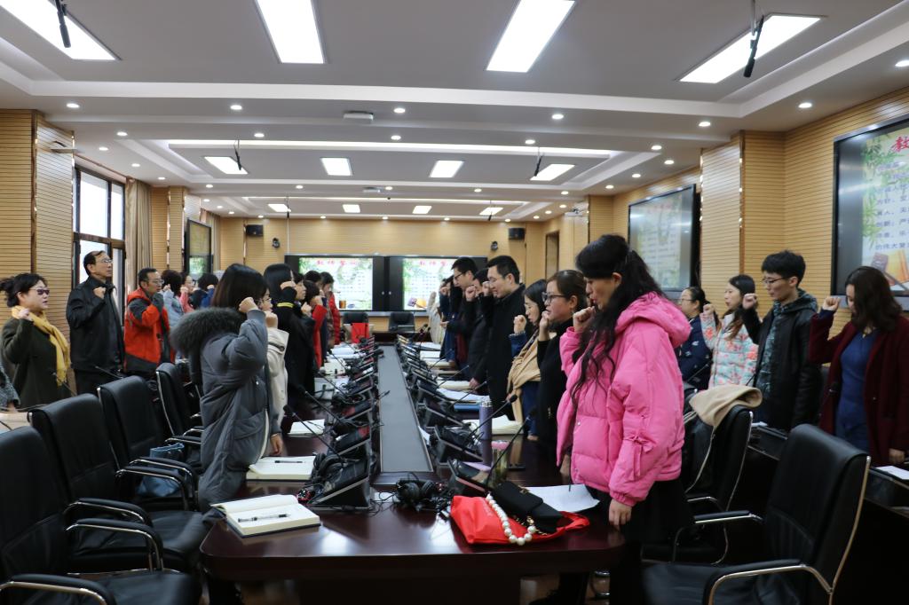 3月2日上午,为进一步加强学院教师师德师风建设,规范教师职业行为,落实立德树人根本任务,根据学校关于开展“立师德 铸师魂开学第一讲教师教育活动”的通知要求,yl88858永利中国院长王鹏带领学院全体教师在东区主教楼同声传译实训室举行了开学第一讲教师教育活动暨新学期师德师风宣誓承诺活动。