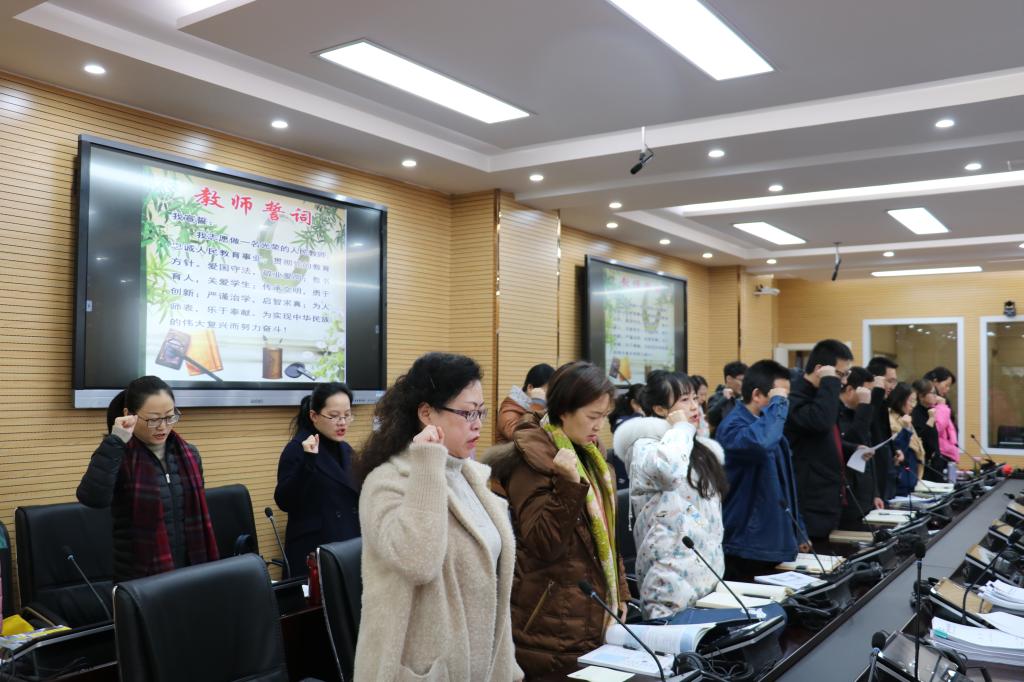 本次活动首先学习了《中华人民共和国教育法》、《中华人民共和国教师法》、《教师资格条例》等相关教育法律法规,宣读了新时代高校教师职业行为十项准则和高校教师师德失范行为处理的指导意见等师德师风教育的相关文件。最后由王鹏领誓,全院教师进行了师德师风宣誓承诺活动。