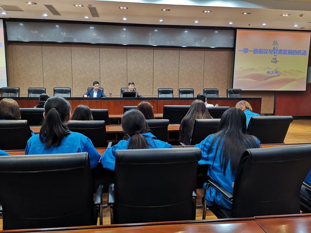 蒲书记首先以张骞首次出使西域的历史故事引入,从“一带一路”倡议的提出、背景、实施、布局、及对甘肃发展的机遇和对职业教育的机遇与挑战等六方面展开,在讲授“一带一路”概念提出与推进中,蒲书记从“一带一路”是什么、什么是“丝绸之路经济带”、“21世纪海上丝绸之路”的战略构想等内容入手,追远溯源,解读了古代丝绸之路的内涵价值。