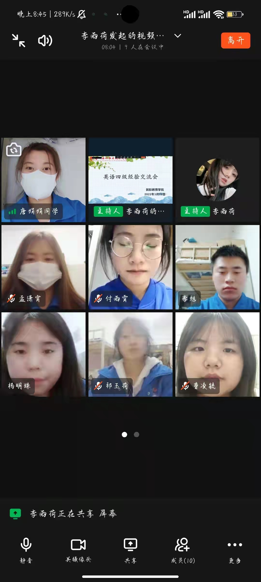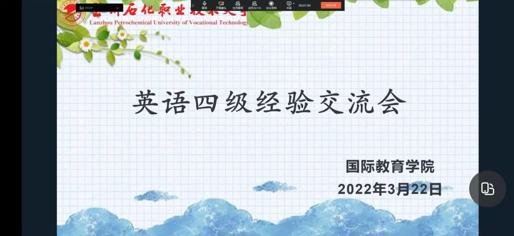 3月22日,yl88858永利中国通过钉钉会议在线上举办“大学英语四级考试经验交流会”活动,我院2021级全体同学和通过大学英语四六级考试的2020级同学参加了本次活动。
