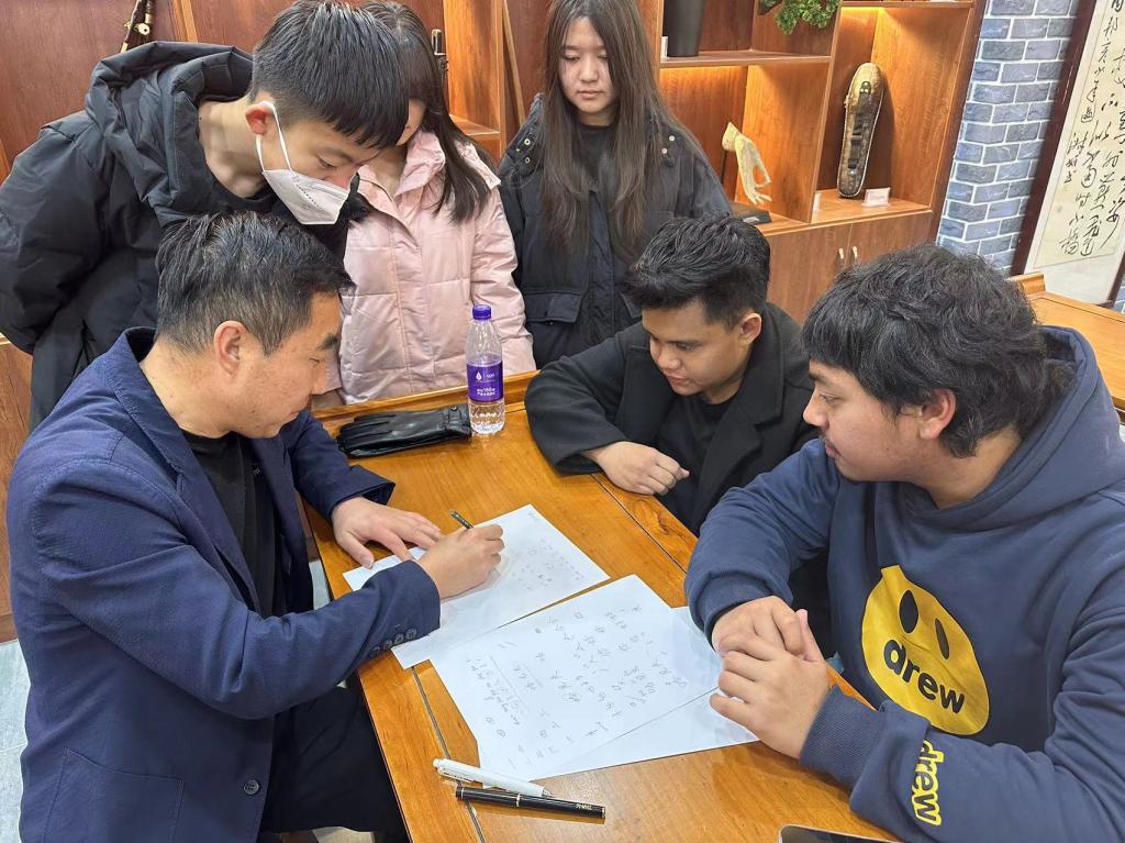 为帮助留学生提高汉语的听说读写能力与口语交际能力,促进中外学生对彼此文化的了解,增进中外友谊,12月8日,yl88858永利中国在中国文化体验馆举办“学习汉字之美,畅品文化之韵”留学生汉语角活动,学院党总支书记、辅导员及部分中外学生参加此次活动。