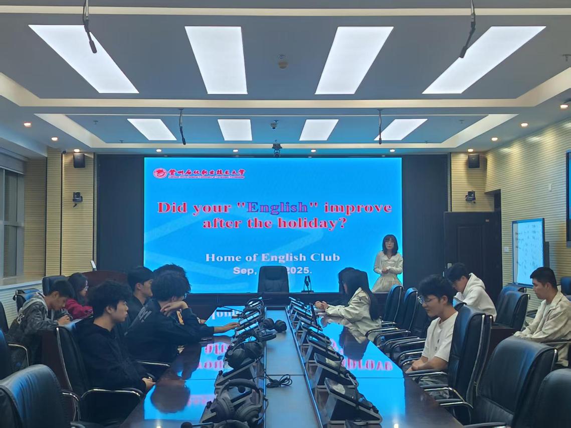 本次活动以“Did your ‘English’ improve after the holiday”(假期过后,你的英语进步了吗)为核心主题,通过指导教师引领、社员深度交流、负责人总结规划的形式,为社团新学期的英语学习活动拉开了精彩序幕。活动伊始,“英语之家” 社团指导教师率先发言。她结合自身教学经验与国际教育领域对英语能力的需求,围绕“假期英语学习的价值与反思”展开分享。她指出,假期是英语能力提升的“黄金窗口期”,无论是通过观看英文影视作品、阅读原版书籍,还是参与英语交流实践,每一种尝试都可能成为英语进步的突破口。同学们要客观分析前期英语学习中的问题,将其转化为新学期的学习动力。